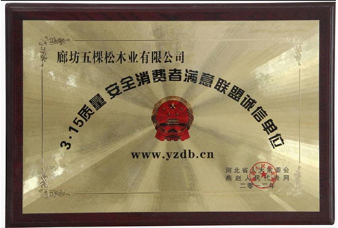 • 3.15質(zhì)量 安全消費(fèi)者滿意聯(lián)盟誠信單位